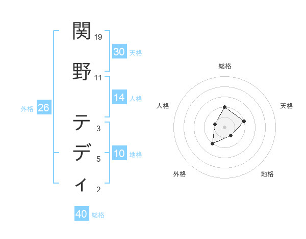関野 テディさんの総格は40画の2点!