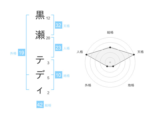 黒瀬 テディさんを姓名の画数から五運を鑑定