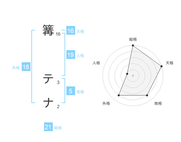 篝 テナさんの天格は16画の5点!