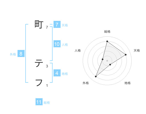 町 テフさんの総格は11画の4点!