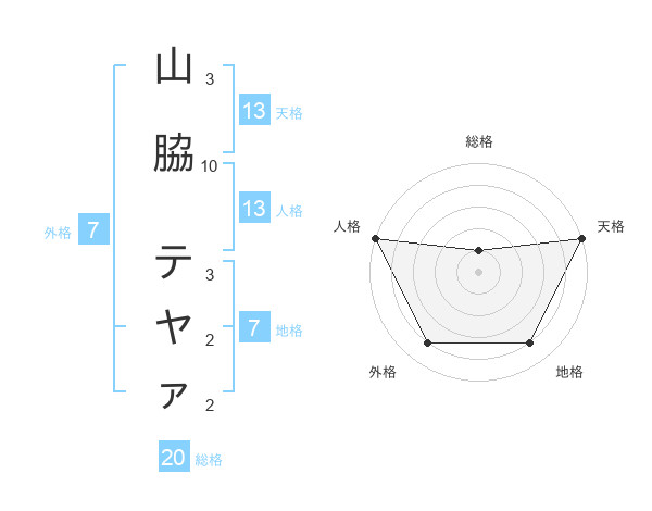 山脇 テヤァさんの天格は13画の5点!