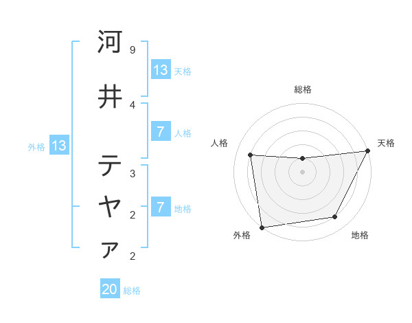 河井 テヤァさんを姓名の画数から五運を鑑定