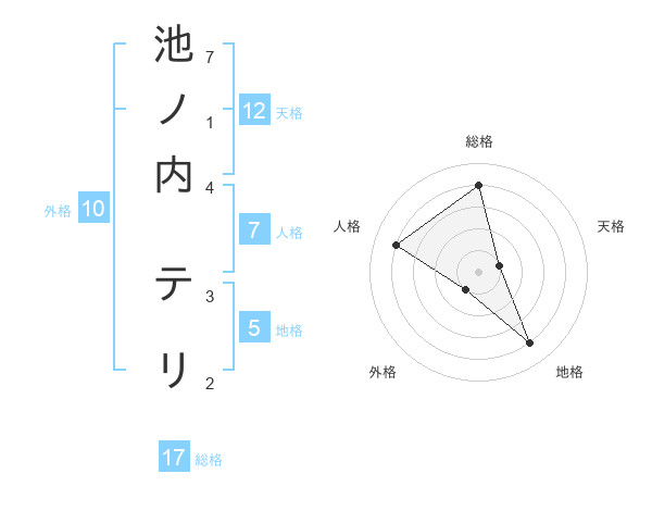 池ノ内 テリさんを姓名の画数から五運を鑑定