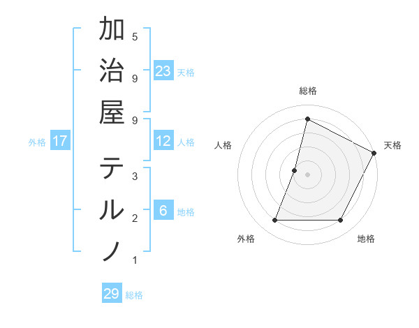 加治屋 テルノさんの天格は23画の5点!