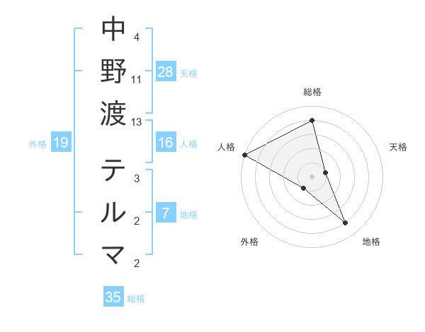 中野渡 テルマさんを姓名の画数から五運を鑑定