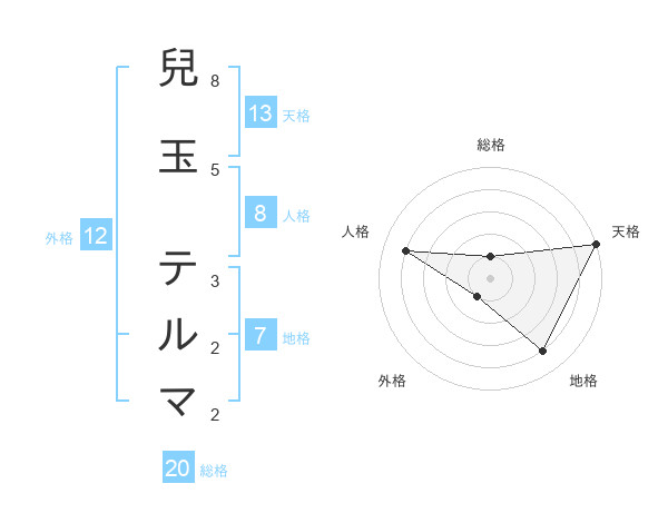 兒玉 テルマさんの天格は13画の5点!