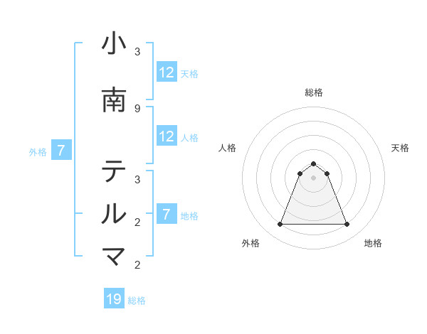 小南 テルマさんの天格は12画の1点!