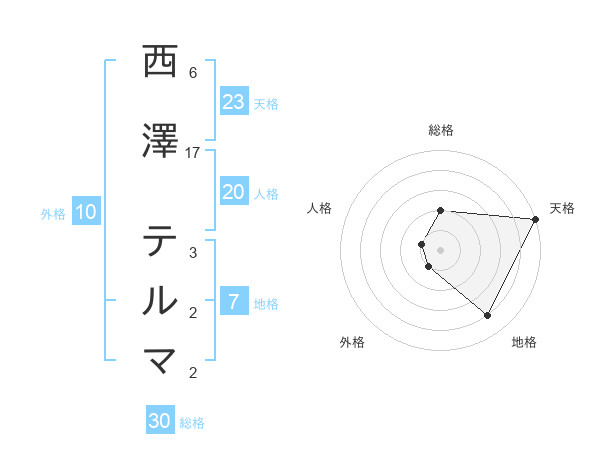 西澤 テルマさんの総格は30画の2点!