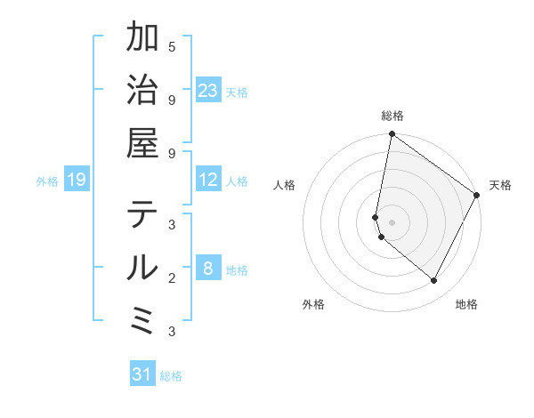 加治屋 テルミさんを姓名の画数から五運を鑑定