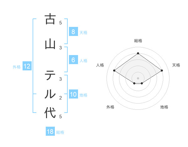 古山 テル代さんの総格は18画の4点