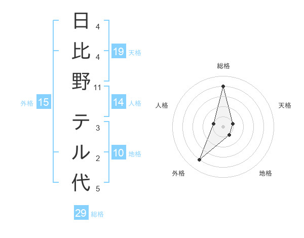 日比野 テル代さんを姓名の画数から五運を鑑定
