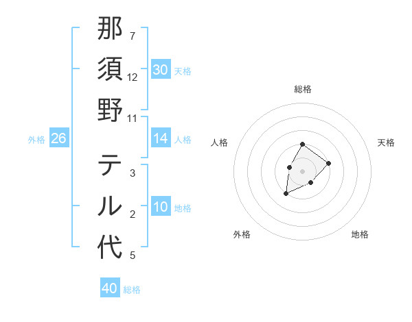 那須野 テル代さんを姓名の画数から五運を鑑定