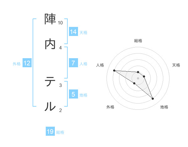 陣内 テルさんの総格は19画の1点!