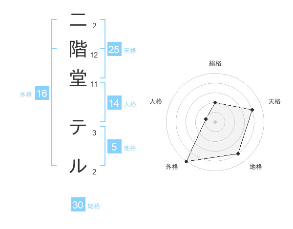 二階堂 テルさんを姓名の画数から五運を鑑定