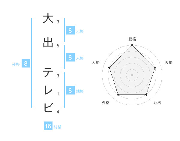 大出 テレビさんの総格は16画の5点!