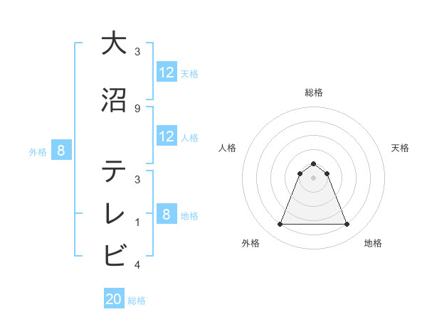 大沼 テレビさんを姓名の画数から五運を鑑定