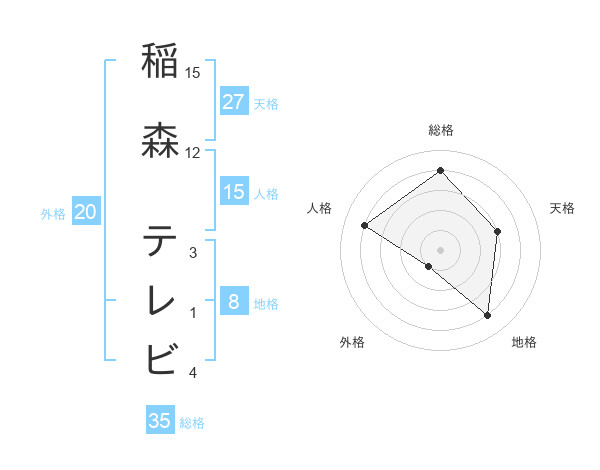稲森 テレビさんの総格は35画の4点!