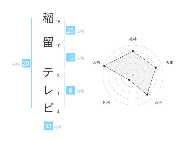稲留 テレビさんを姓名の画数から五運を鑑定