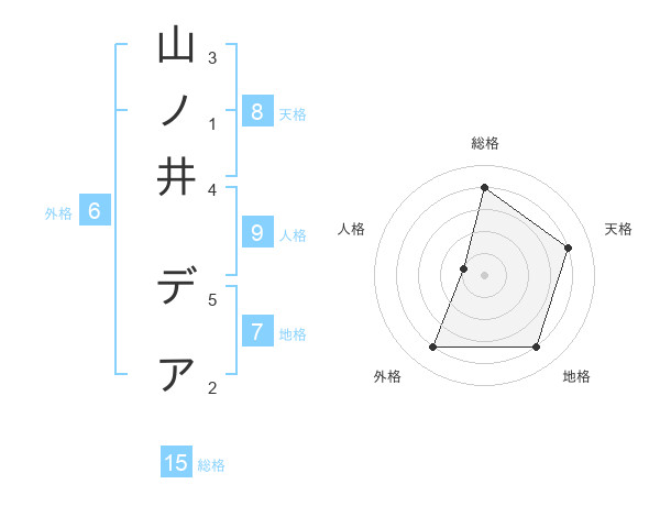 山ノ井 デアさんを姓名の画数から五運を鑑定