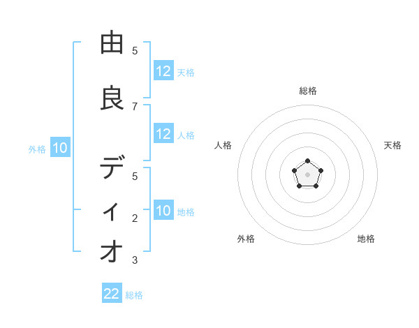 由良 ディオさんの天格は12画の1点!