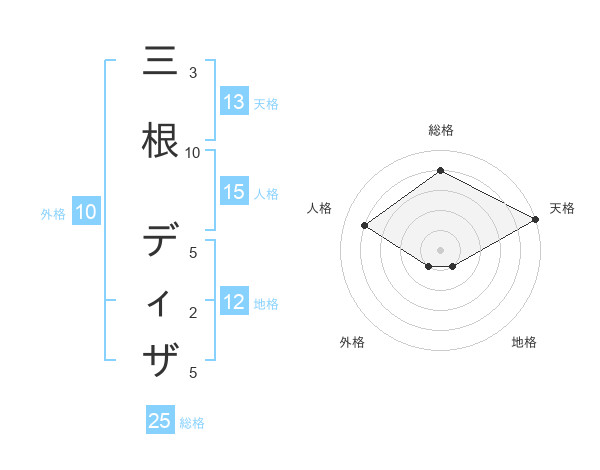 三根 ディザさんの天格は13画の5点!