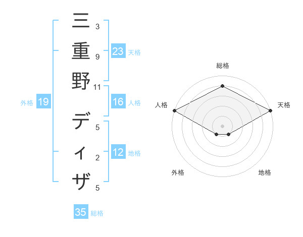 三重野 ディザさんを姓名の画数から五運を鑑定