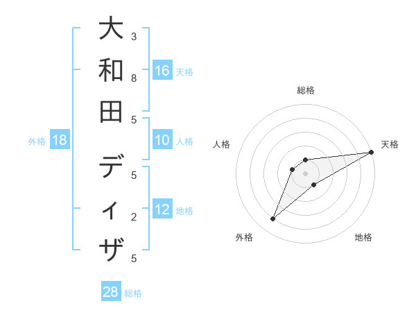 大和田 ディザさんを姓名の画数から五運を鑑定