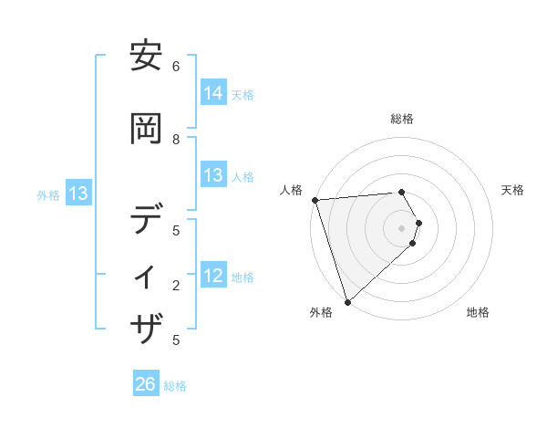 安岡 ディザさんの外格は13画の5点!