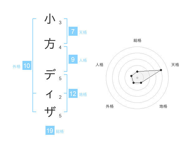 小方 ディザさんの総格は19画の1点