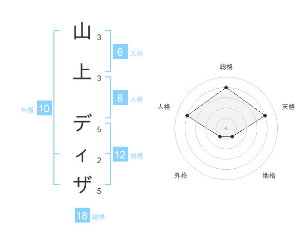 山上 ディザさんの総格は18画の4点