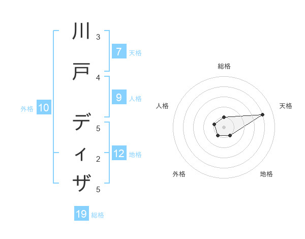 川戸 ディザさんを姓名の画数から五運を鑑定