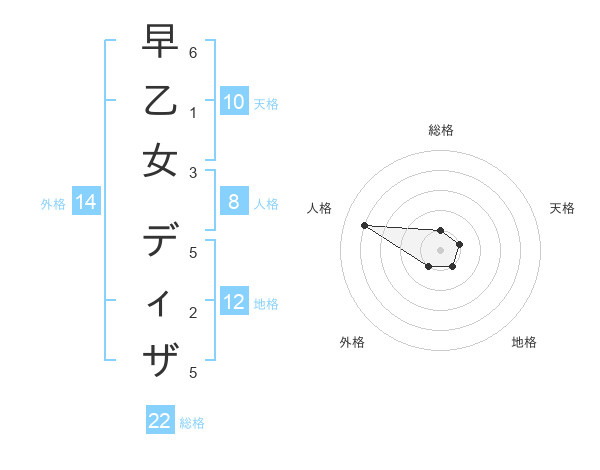 早乙女 ディザさんを姓名の画数から五運を鑑定