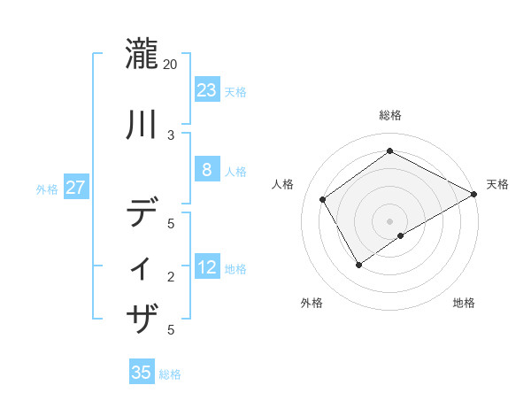 瀧川 ディザさんを姓名の画数から五運を鑑定