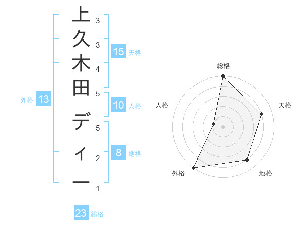 上久木田 ディーさんの外格は13画の5点!