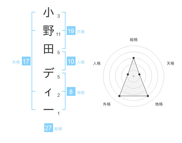 小野田 ディーさんを姓名の画数から五運を鑑定