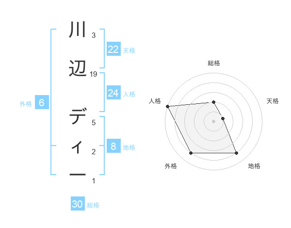 川辺 ディーさんを姓名の画数から五運を鑑定