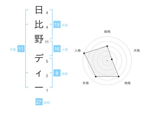 日比野 ディーさんを姓名の画数から五運を鑑定