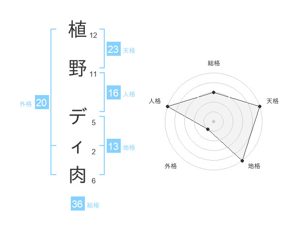 植野 ディ肉さんの天格は23画の5点!
