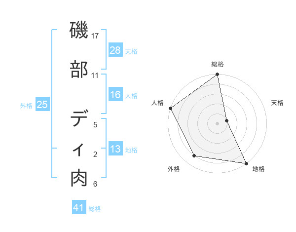 磯部 ディ肉さんの総格は41画の5点!