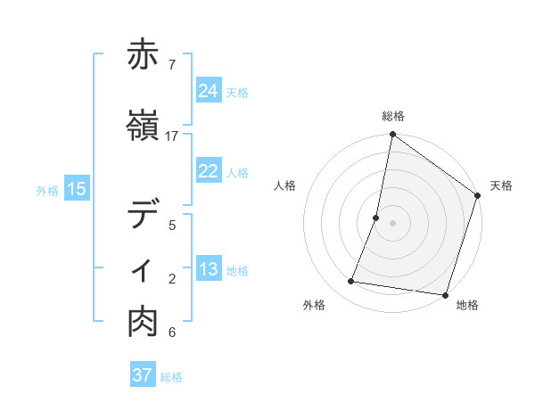 赤嶺 ディ肉さんを姓名の画数から五運を鑑定