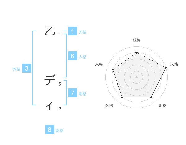 乙 ディさんの天格は1画の5点!