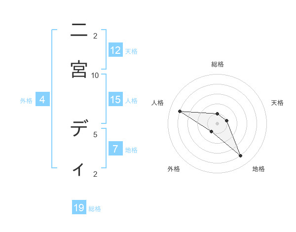二宮 ディさんの天格は12画の1点!