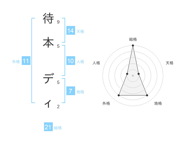 待本 ディさんの総格は21画の5点!