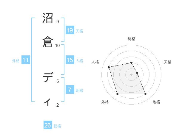 沼倉 ディさんを姓名の画数から五運を鑑定