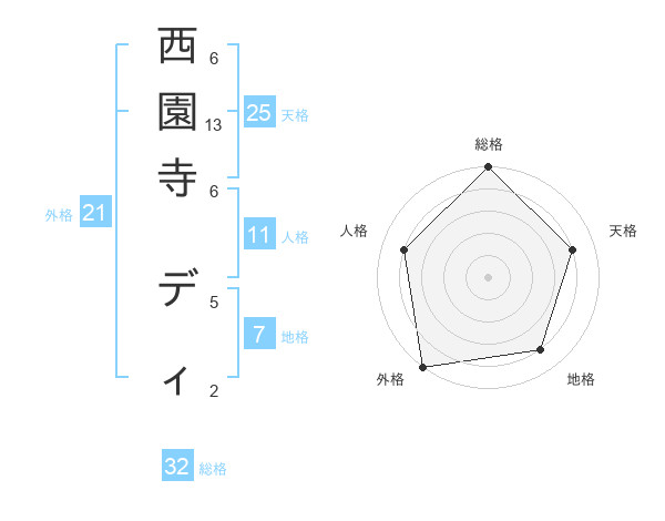 西園寺 ディさんの外格は21画の5点!