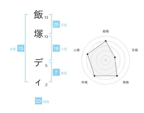 飯塚 ディさんを姓名の画数から五運を鑑定