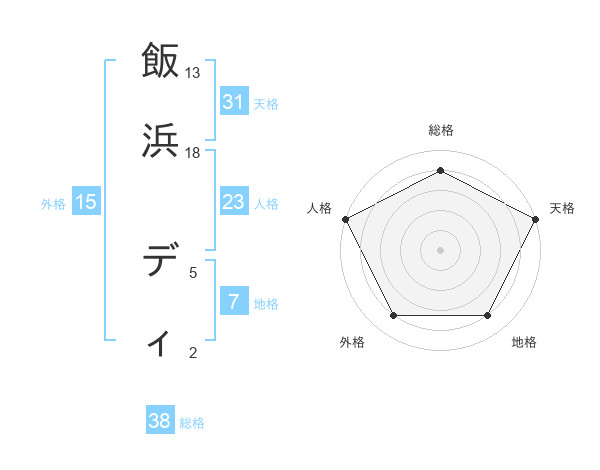 飯浜 ディさんの総格は38画の4点!