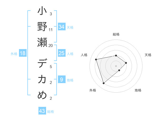 小野瀬 デカめさんの地格は9画の1点!