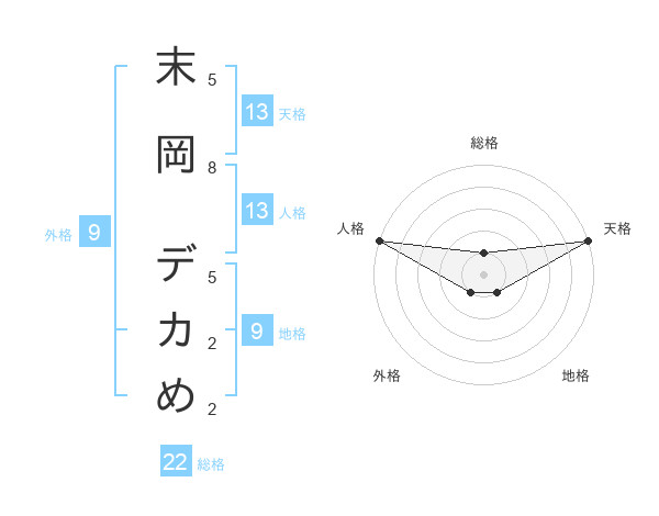 末岡 デカめさんの天格は13画の5点!