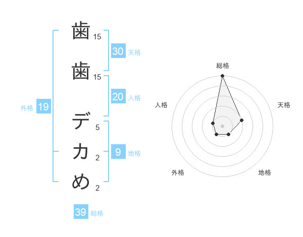 歯歯 デカめさんを姓名の画数から五運を鑑定